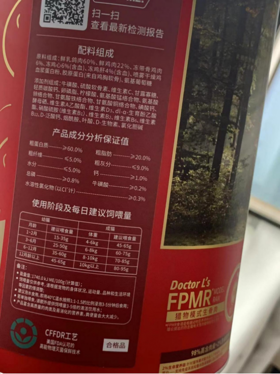 这个鸽肉冻干真的拯救了我家猫猫大队的食欲,小八小九看见我倒碗里了,闻见味儿过来就开始炫饭,我都惊讶了一下。鸽肉冻干专治各种不服,挑嘴没食欲那是还没遇到这款!不过看见这个配料表我就觉得,猫猫爱吃也不是没道理,里面用的不仅是鸽子,而且是乳鸽,而且还是60%的鲜乳鸽!。我都没能过上天天吃鲜乳鸽的日子呢,今天又是羡慕猫猫的,!还有22%的鲜鸡肉,有鲜鸡肉的加入,不用怕猫猫第一次吃鸽子吃不惯哈~然后后面就是可食用骨骼和含血内脏,这个弗列加特老玩家应该都知道,是猎物模式生骨肉食谱哈,还原猫咪野外猎食模式的一种专业生骨食谱,更契合猫猫天性。再加上2%的甄稀营养素,满足猫咪日常营养需求。这个我就不多说了,初阶玩家建议查查看哈~