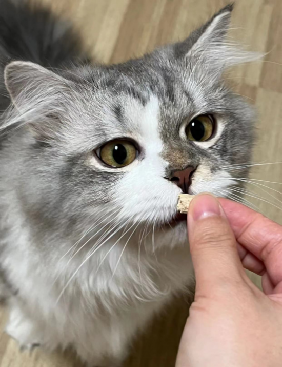 爱不爱从眼神就能判断吧,你看他爱不爱,太深沉了(其实是馋的)。猫友友们家里的小猫要是夏天食欲不好,也可以入一桶这款弗列加特的鸽肉冻干给猫猫试试,我家猫猫大队都很爱吃。