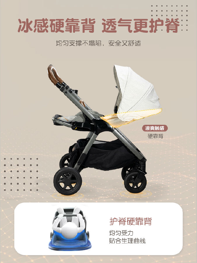 finiti硬靠背护脊婴儿推车拥有超高颜值和,操作体验,凭借其颠覆性的创新设计,轻松拿下有着“设计界奥斯卡”之美誉的德国红点设计大奖。冰感硬靠背设计,更呵护宝宝脊椎发育,保护新生儿柔弱脊椎;凉爽触感,夏日出行也始终清爽,面料柔软透气,给予宝宝自在感受。