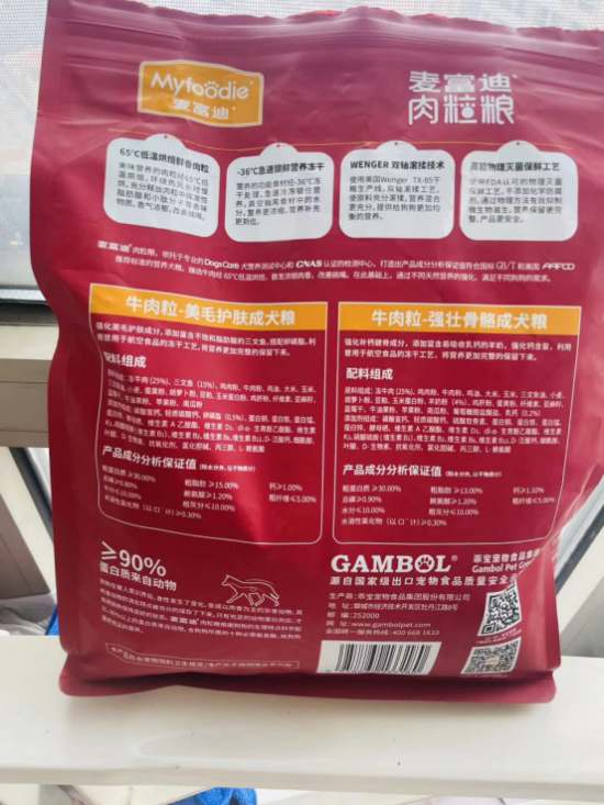 买狗粮你们就得认准这些大品牌买,就和给宝宝吃的东西一样,选择品控到位,口碑好的食物,才是硬道理。麦富迪就是这样的,原材料可以溯源到产地,自有工厂生产和研发,我和朋友都对这个品牌很有好感,也给狗子回购了。