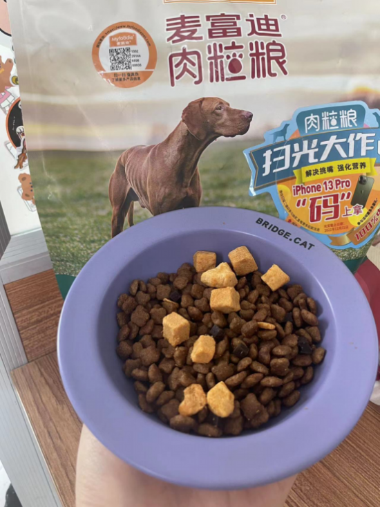 之前家里小狗一直吃麦富迪的肉粒粮,我总觉得作为吃货,狗生只尝试一种粮,有点太遗憾了。于是科学换粮,狗子一下从饭桶变成饭渣了。整个狗眼瞅着就emo了,这可不行,赶紧给换回麦富迪肉粒粮啦,果然想要狗子快乐干饭的前提还是要有适口性在线的靠谱口粮呀。