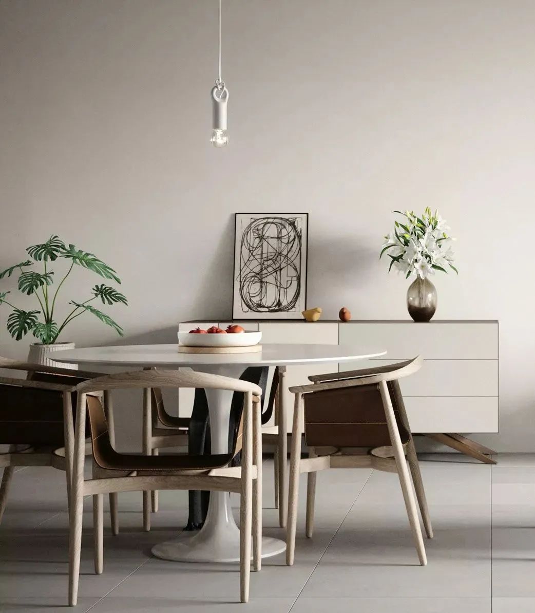 ⑦如果觉得餐厅空间太单调,都可以使用挂画进行点缀,1-3幅比较适合,数量不宜过多,否则看起来太过拥挤,反而显得不好看。