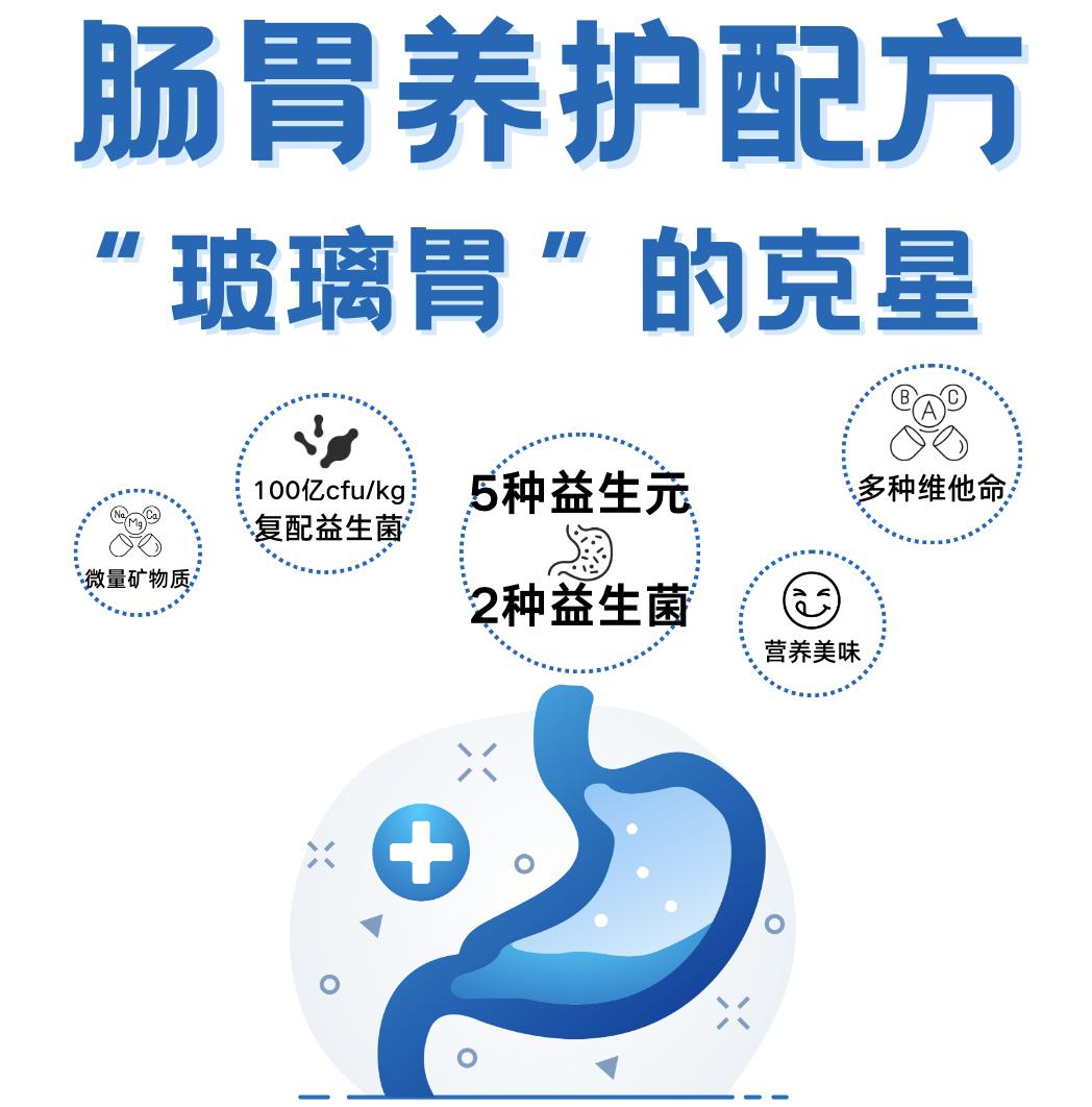 在营养均衡的基础上,欢乐爪爪还将调理肠胃作为产品的核心功能,在产品中同时添加了益生菌和益生元。益生菌是一种有益菌,在猫咪肠道有益菌数量缺乏的时候,起到数量上的补充,暂时缓解肠胃问题,治标不治本;而益生元可选择性地刺激一种或几种菌落中的细菌生长和活动,通过促进自我繁殖增加有益菌数量,赶走病原菌,调节肠道菌群。益生菌和益生元的相互配合,达到长效强化肠道自身免疫力的目的。