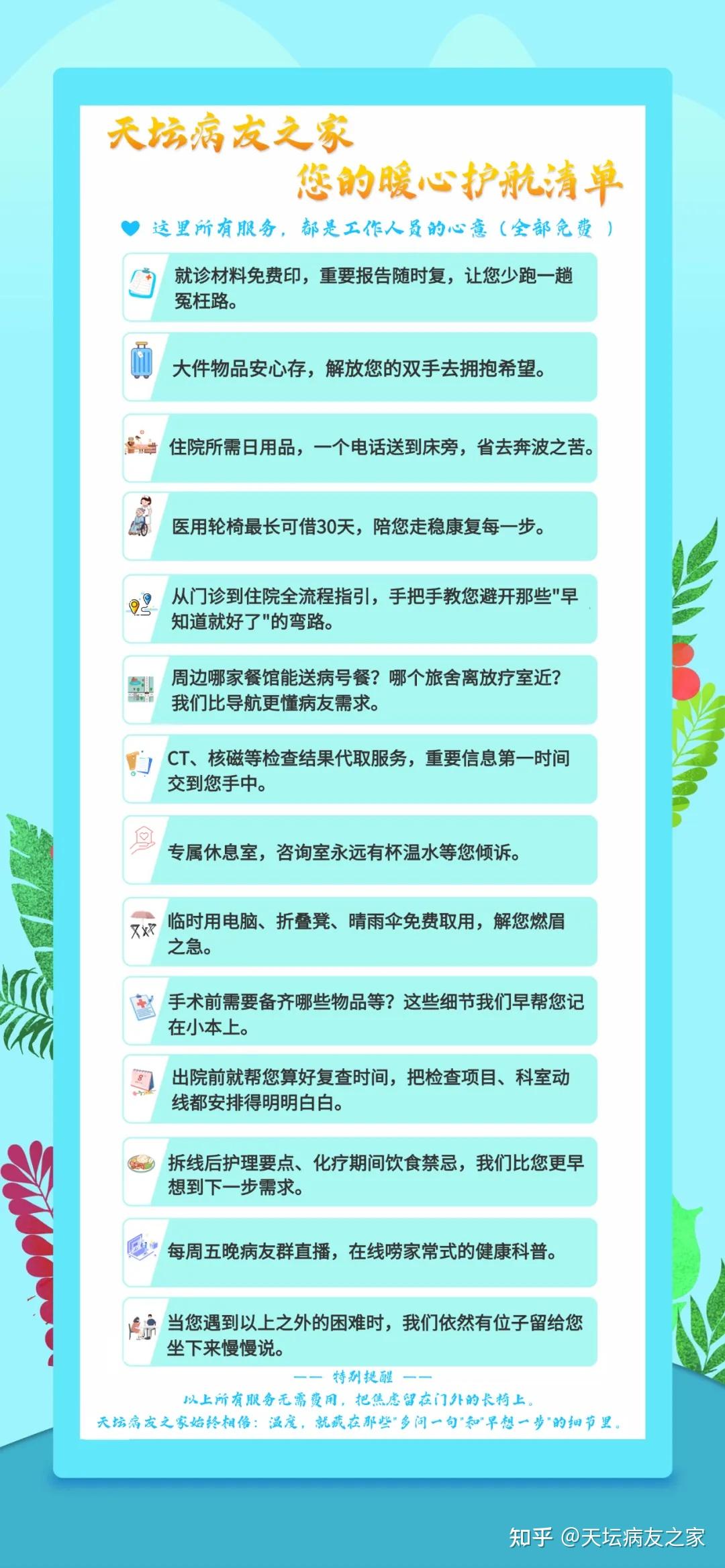 天坛病友之家为您提供以下便利:我们郑重承诺:所有服务,,免费!