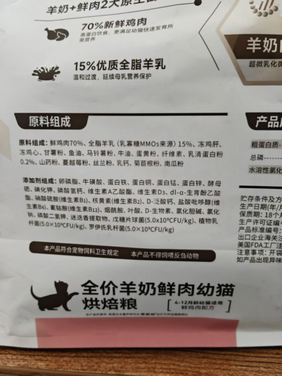 下单前我也是问了好多平时交流比较多的养猫博主,看到大家出奇一致的好评,我好奇心更是达到了,,立马下单了!到手才明白它有多“神”,作为一只刚刚脱离母乳的小猫咪,任何与母乳营养脱节的过渡都可能让幼猫产生不良反应。这款粮就“神”在这里,以“贴近母乳营养”为核心,配方通过70%鲜鸡肉成分与15%优质的全脂羊乳的黄金组合,大大延续了母乳级别的呵护。同时,营养也必须补充到位才可以,≥42%粗蛋白、≥21%粗脂肪,妥妥的高蛋白低脂肪,帮助小猫咪发育生长的同时轻松长出腱子肉~