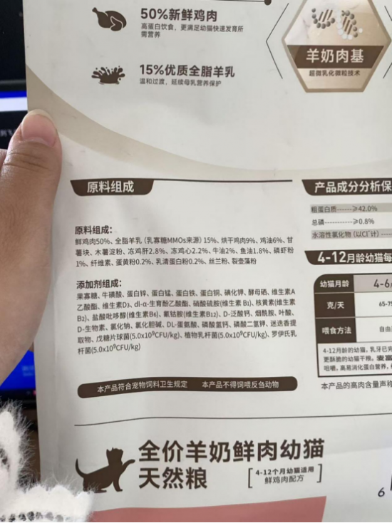 这款猫粮的配方中,10%的生羊乳与55%的鲜肉组合堪称一绝,,地将奶和肉这两种天然营养融合在一起。生羊乳里富含乳糖、乳脂肪和乳蛋白,就像一个源源不断的能量和营养库,为幼猫的成长提供充足的动力。而55%的鲜肉则提供了高质量的动物蛋白,对幼猫的骨骼发育和肌肉生长起着至关重要的作用。