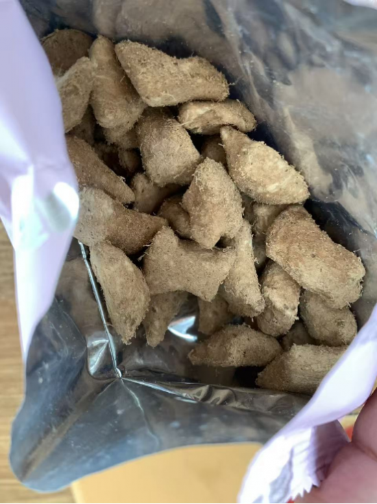 工艺方面,它用的是FD冷冻干燥技术,能较好保留食材的营养和风味。颗粒酥脆,不硬不潮,猫嚼起来不费劲。复水后也不会散成渣,泡开喂很方便,还能顺带补充水分。他们家还用了专利气爆技术(专利号:202310234787.7),据说能打破食材细胞结构,帮助营养释放,虽然看不到,但从猫的体态变化来看,效果是能感知的。