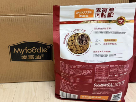 这一袋里经典牛肉味肉粒粮的动物源成分≥77%,满满的肉香,直接把挑食狗狗变成“干饭王”,妥妥的“真香警告”。而且≥34%的粗蛋白搭配≥15%的粗脂肪,让狗狗能量达标,每天活力满满,上蹿下跳根本停不下来!里面的大颗肉粒,吃起来超带感,主要是真的过瘾,别说狗子爱吃,我家猫猫都盯着狗粮想偷几口呢。麦富迪的肉粒纤维保留得超完整,是根据狗狗咬合力学科学设计的,,满足狗子啃咬的天性,让狗狗大口吃肉,幸福感直接拉满!另外,这款粮里还添加了多种有益狗狗健康的超级食材,多元营养搭配,精细喂养,狗狗健康好状态全靠麦富迪肉粒粮了