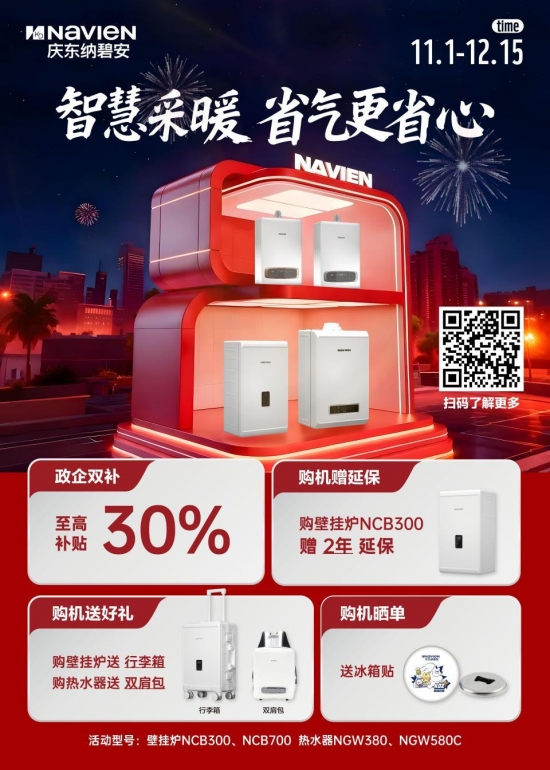 为了让更多家庭早日享受到智慧采暖的便利,庆东纳碧安针对NCB300系列推出多重优惠活动,活动时间为2025年11月1日-12月15日,覆盖整个采暖季前期,给您充足的决策与选购时间。