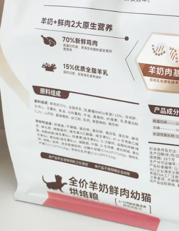 贴近母乳营养作为核心目标,麦富迪奶弗幼猫烘焙粮特别添加了15%的生羊乳,直接代替乳粉,采用液体入料的方式。这种方式zhui大程度地保留了天然原生营养,就像给幼猫送上了妈妈般的温暖呵护。要知道,羊奶的营养丰富又易于吸收,对于肠胃娇嫩的幼猫来说,简直是再合适不过啦。除了生羊乳,这款猫粮里还添加高达70%的鲜肉含量。鲜肉可是猫咪这种肉食动物的心头好,富含优质蛋白质和各种必需氨基酸。而且,猫粮里添加的母乳菌,更好保护幼猫脆弱肠胃。 15%生羊乳搭配70%鲜肉的组合,,构成了羊奶肉基的两大原生营养,为幼猫的成长提供了坚实的基础。
