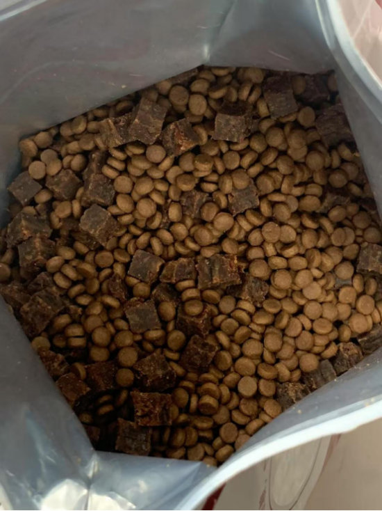 这款粮的思路很聪明:20%真肉粒+80%营养干粮,形成“2:8超级营养配比”。肉粒提供丰富氨基酸和咀嚼乐趣,干粮则作为稳定营养基底,避免因单一肉源导致营养偏科。这样一来,既满足狗狗爱吃肉的天性,又保证营养全面,不用再额外加罐头或冻干。