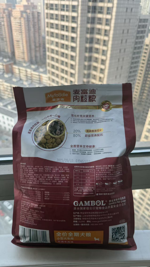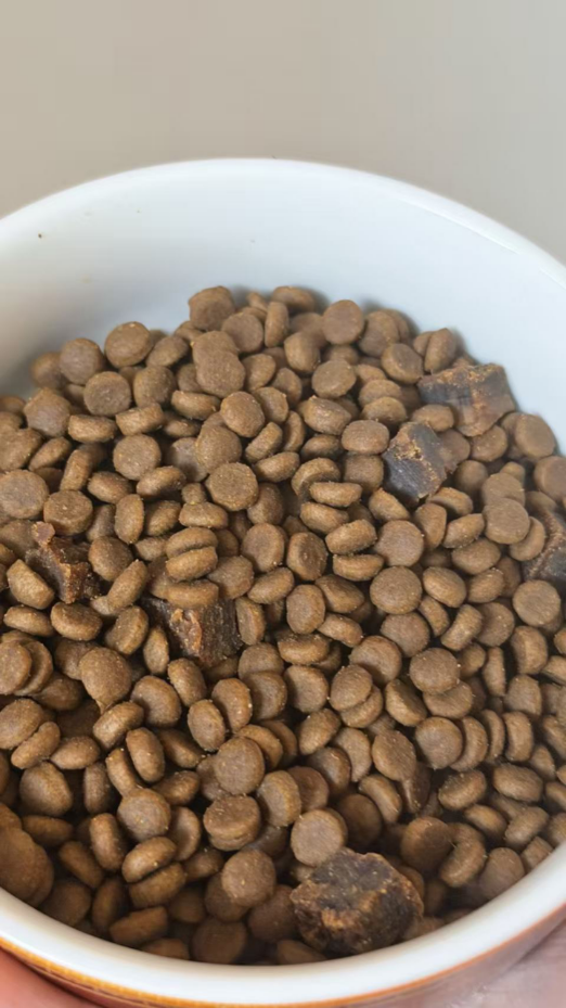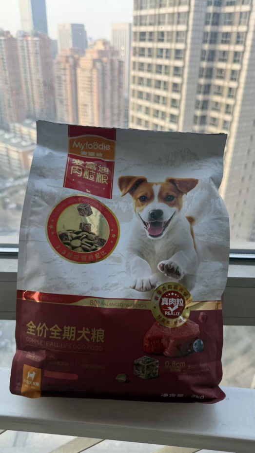 而且肉粒粮里面的动物源成分高达77%以上,一打开袋子就是扑鼻的肉香。我家那只平时挑食到不行的狗子,闻到这味道直接化身“干饭王”,埋头猛炫根本停不下来,妥妥的真香现场!粗蛋白含量≥34%,粗脂肪≥15%,难怪我家这个小东西每天上蹿下跳的活力值直接拉满,麦富迪你做狗粮真是有一套啊。就这一袋里面的大颗肉粒,吃起来尊嘟超有嚼劲,别说狗子爱吃,连我家猫都经常蹲在旁边偷瞄,试图趁我不注意偷几口,吃货家族实锤了。