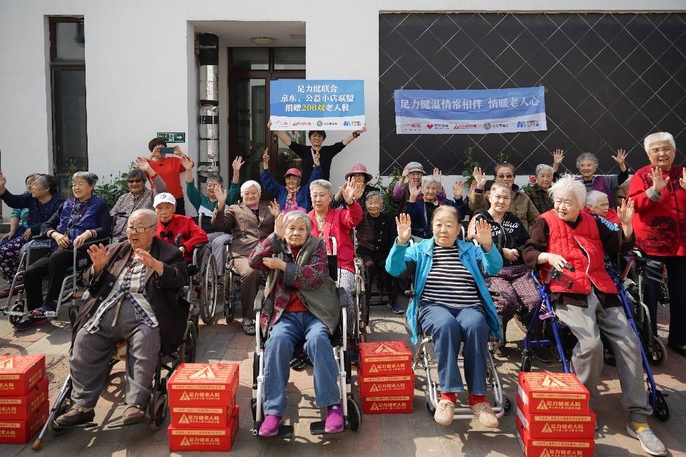 5月6日,京东联合知名老人鞋品牌足力健,开展公益捐赠活动。捐赠仪式在北京馨园老年公寓举行,百余位老人获赠了崭新的老人鞋。