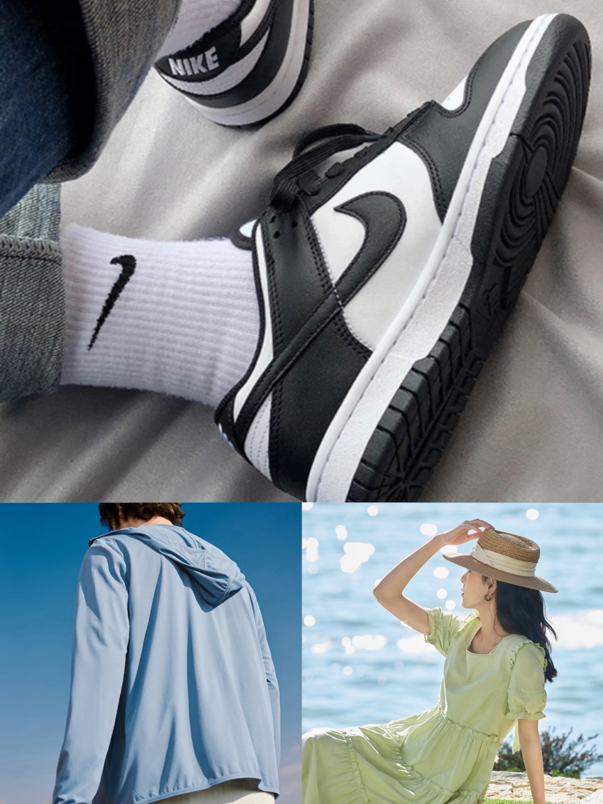 一双潮流百搭的运动鞋、一件轻薄透气的防晒衣、一条优雅的连衣裙,这三件单品无疑是炎炎夏日里既实用又时尚的,选择。耐克DUNK LOW(GS)潮流爆款经典回归,采用耐穿结构和元年款配色,轻松驾驭从晨跑到傍晚漫步的各种场景;搭配上一件精心设计的网易严选UPF50+冰丝防晒衣,有效抵御紫外线侵袭,保护你的肌肤免受伤害,是大家衣橱中不可或缺的防晒神器;茵曼田园风泡泡连衣裙,更是夏日衣橱中的点睛之笔,舒适棉麻夏日穿起来更自在凉快,再加上京东服饰白衣补贴超低价,人气爆品直接拿下!