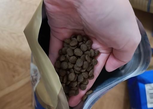 颗粒大小刚刚好,就算添加了鱼油也是不油不腻不粘手的。这点对我这种有点小洁癖的人来说太友好了——以前喂别的粮,主子吃完下巴总挂点油渍,还得拿湿巾擦,现在完全不用,吃完自己舔两下就干净,省心不少。