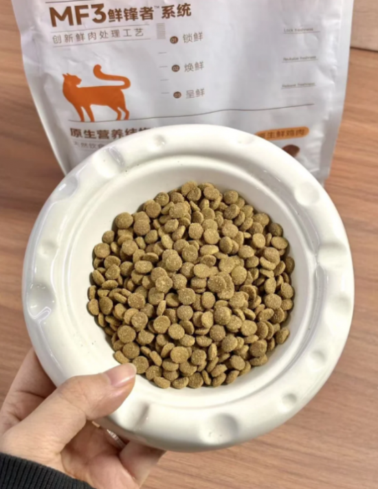 猫粮里全是实打实的鲜肉,营养值直接拉满,而且颗粒也是干爽不油腻。低温冷压处理的方法特别赞,这下猫粮不会油腻腻的了,又不会粘的饭盆上到处都是,咪的小下巴也是干干爽爽,要知道这些残留油脂如果不及时清理,氧化后极易滋生细菌,正是导致猫咪黑下巴的元凶!我真的形容不出来,爱干净的铲屎官你们都懂这是怎么一种爽感吧。