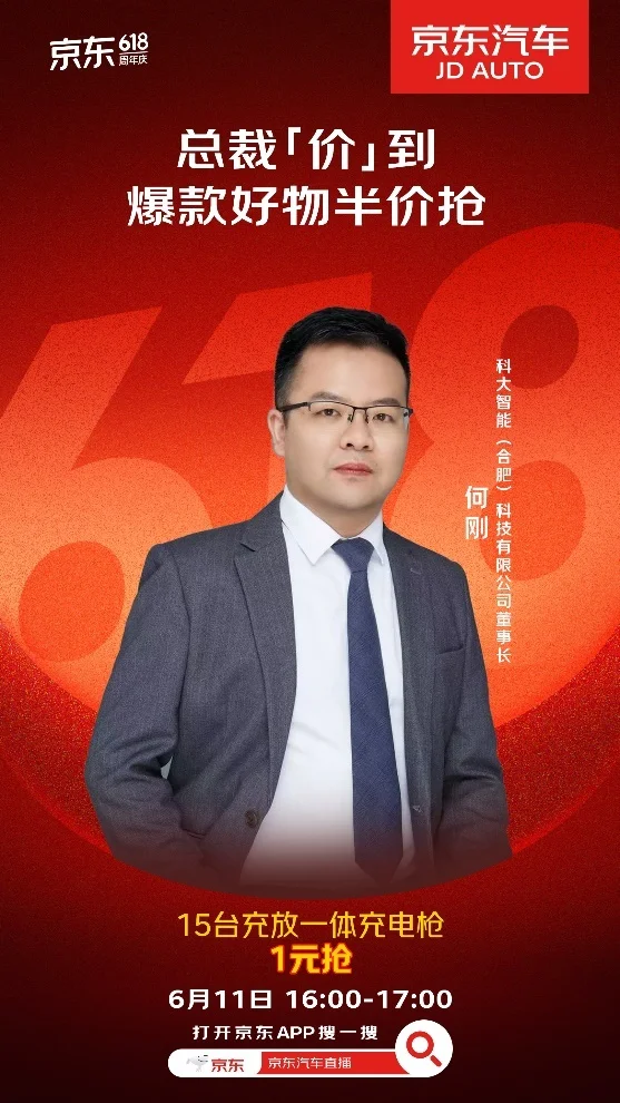 京东汽车618总裁“价”到携超多福利再次来袭!6月11日,科大智能(合肥)科技有限公司董事长何刚携1元秒杀、新品直降、爆款半价等多重实实在在的福利活动做客京东汽车采销直播间,为京东汽车618站台。直播间氛围火热,共吸引超40万人围观。科大智能充放一体充电枪1元秒杀瞬间,,掀起京东汽车618充电设备焕新潮流。