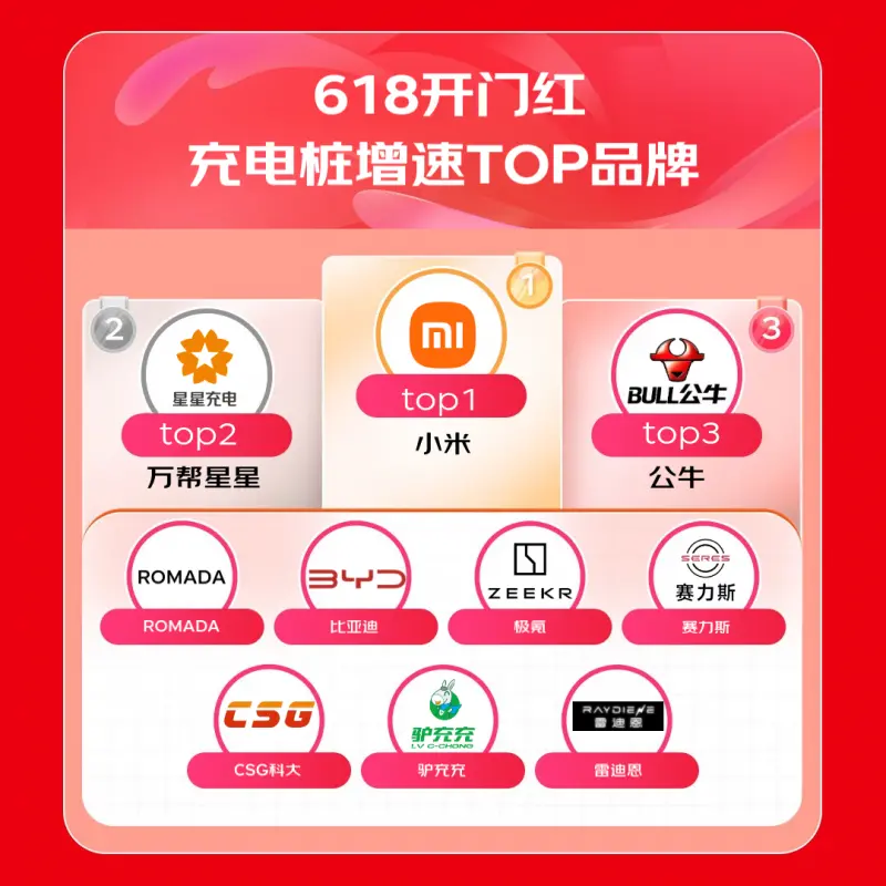 随着新能源汽车保有量攀升,驱动充电装备需求井喷。京东开门红期间,充电桩品类增速TOP榜由小米、万帮星星、公牛领衔,比亚迪、极氪等车企品牌及专业充电设备商ROMADA、驴充充等齐齐发力,新能源基础设施配套市场持续扩容。