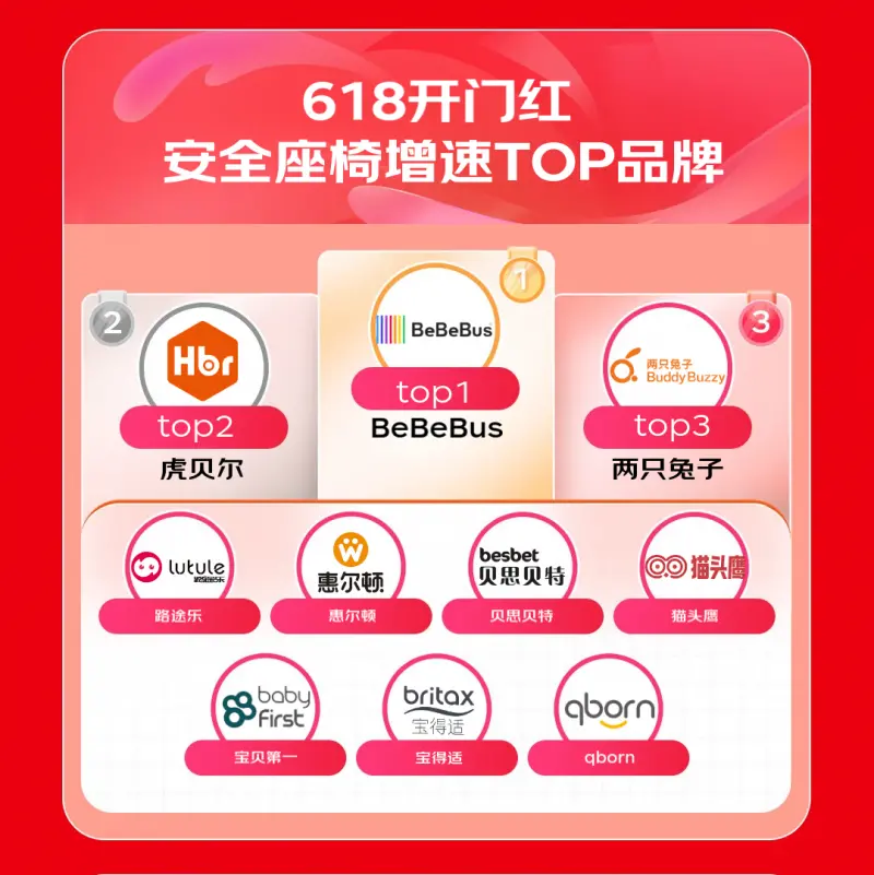 在儿童安全座椅市场,国货新锐与专业品牌齐头并进。京东开门红安全座椅增速TOP榜单中,BeBeBus、虎贝尔、两只兔子霸榜前三,与路途乐、惠尔顿等专业品牌及宝得适等国际,同台竞技,呈现繁荣发展态势。