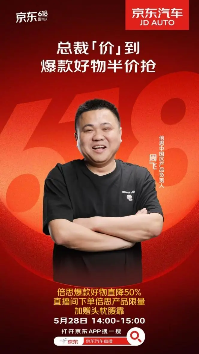 在京东汽车618开启之际,京东汽车采销直播间又迎来了一位重磅大佬,用诚意满满的汽车用品“大放价”引爆消费狂欢。5月28日,倍思中国区产品负责人周飞空降京东汽车采销直播间,携多重惊喜福利为京东汽车618站台。凭借专业硬核的产品讲解和大力度的折扣优惠,本场直播吸引超55万用户涌入直播间,取得单场直播客流量猛涨近14倍的惊艳效果。