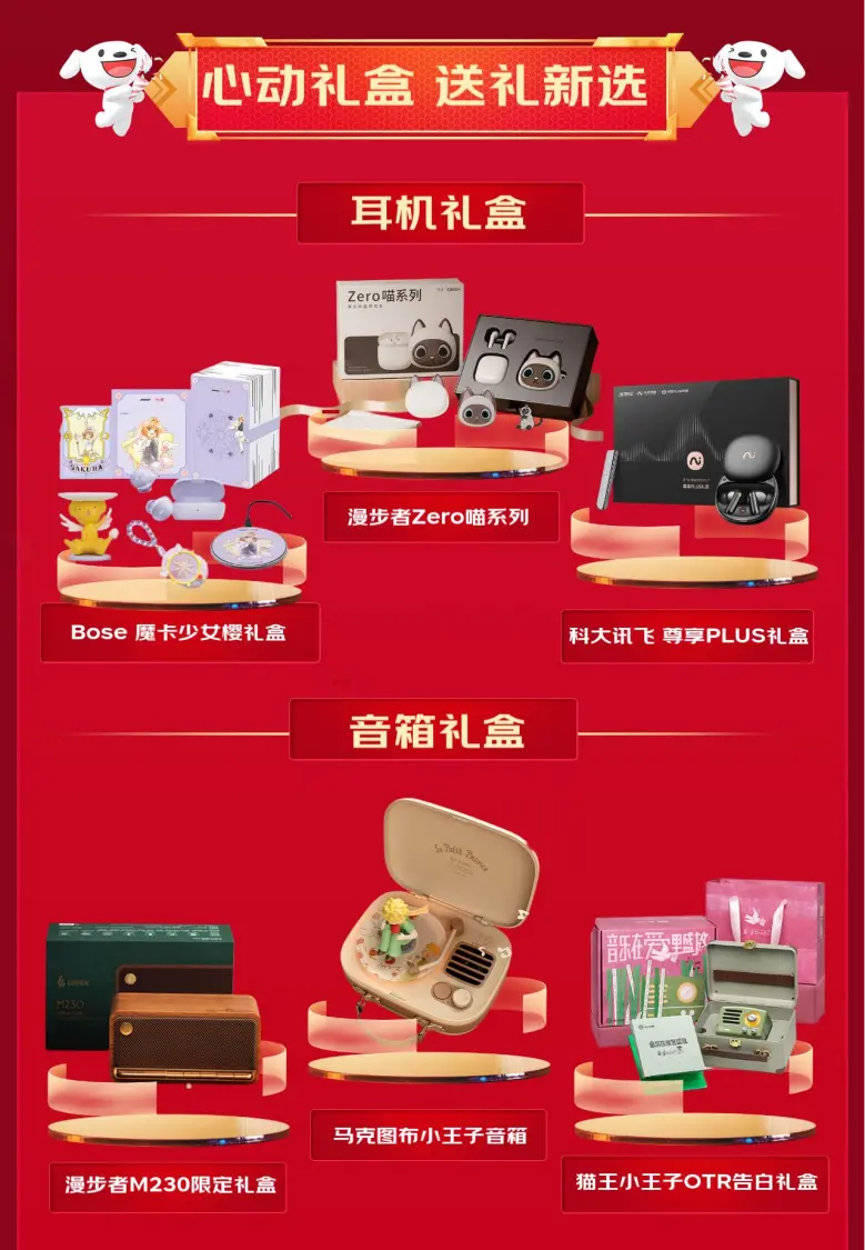 值得一提的是,潮流美观且富有新意的耳机音箱礼盒成为消费者送礼的热门选择。漫步者Zero喵系列礼盒、Bose魔卡少女樱礼盒、科大讯飞尊享PLUS礼盒凭借可爱萌趣的外观设计以及出色的使用功能,成为消费者送礼时的,耳机礼盒。马克图布小王子音箱、漫步者M230限定礼盒和猫王小王子OTR告白礼盒成为了深受消费者喜爱的音箱礼盒前三名。