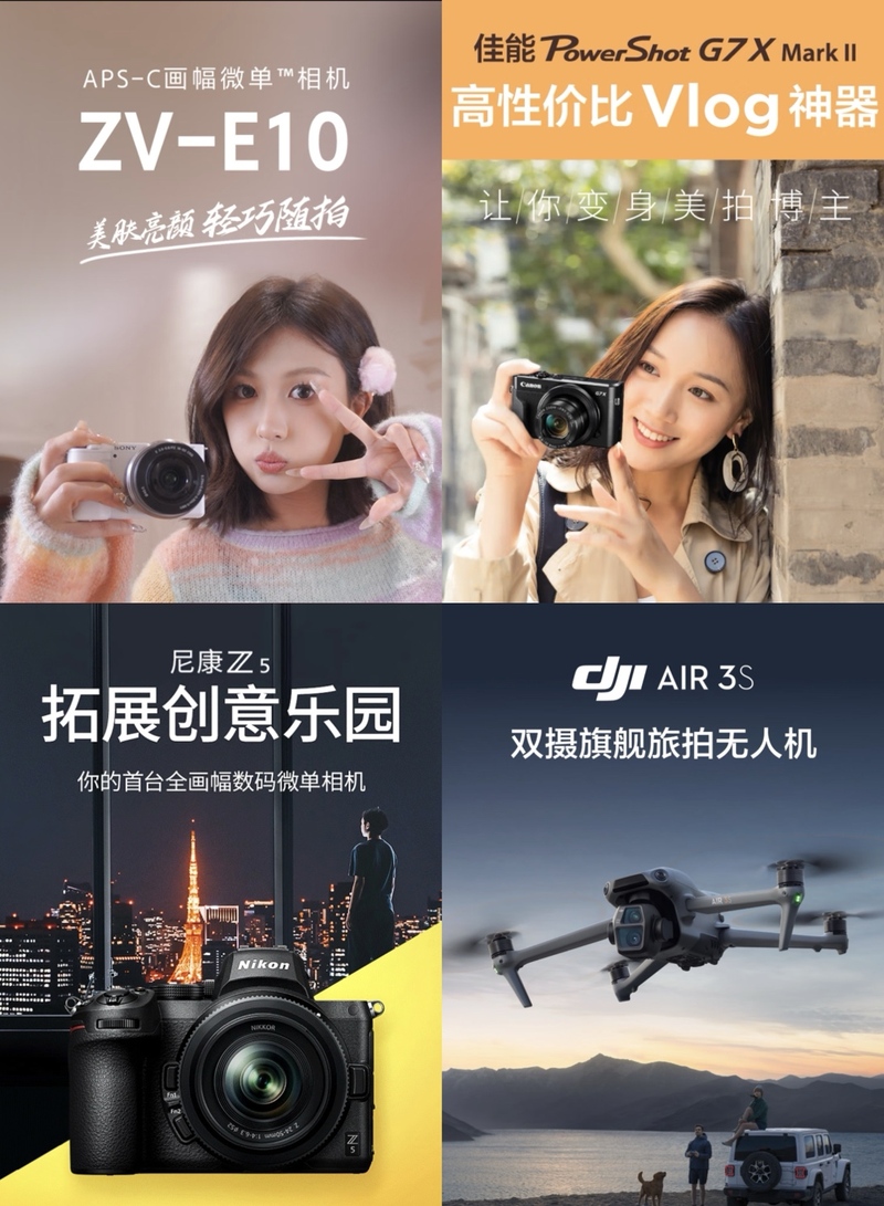 在赛事有序推进的同时,京东11.11也已正式开启,京东3C数码携手索尼、佳能、尼康、大疆、松下等知名相机厂商,带来多款性能出众的设备。其中,索尼ZV-E10L半画幅微单相机,以其轻巧机身和美肤功能成为人像与生活拍摄的理想选择;佳能PowerShot G7 X Mark II,拥有向上翻转的3.0英寸触摸屏,是、高性价比的Vlog神器;尼康Z5全画幅数码微单相机,具备约2432万有效像素的FX全画幅影像传感器,适合捕捉生活中的特殊时刻;DJI Air 3S双摄旗舰旅拍无人机,支持双摄4K/60fps HDR视频录制,能够拍摄出细腻画面,呈现电影级效果。