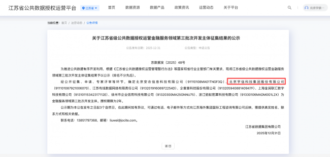 近日,江苏省数据集团有限公司正式公示省级公共数据授权运营金融服务领域开发主体名单,宇信科技凭借其深厚的技术积淀与丰富的场景化落地能力成功入选。这不仅是对企业综合实力的一次权威认证,更标志着宇信科技将在江苏省数据要素市场化配置改革中承担关键角色,为金融业的高质量发展注入新动能。此次入选,正是宇信科技积极响应国家关于发展数字金融、培育数据要素市场战略号召,将自身发展融入时代进程的生动实践。