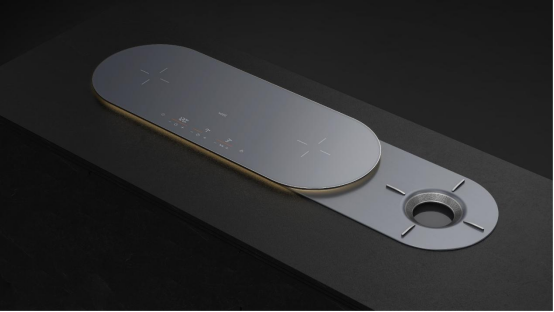 本次AWE展出的幻隐・双擎灶,由华帝,工业设计中心倾力打造,凭借“隐嵌一体化”设计荣获美国 IDEA 国际设计铜奖,成为全场焦点。这款产品融合东方藏露哲学与极简美学,采用双电磁灶+单燃气灶的创新配置,通过智能滑轨技术实现燃气灶的隐藏式收纳,无需使用时完全嵌入台面,保持厨房空间整洁统一。