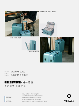 格林威治是VERAGE维丽杰的核心产品之一,凭借其独特的设计理念,自推出后就受到市场广泛关注。继获得德国红点奖后,此次又荣获了德国iF设计奖,这证实维丽杰已经把可持续发展理念和现代出行需求融合在了产品设计里。格林威治系列给短途商务旅行、休闲旅行等实际应用场景提供了环保又实用的出行解决办法。