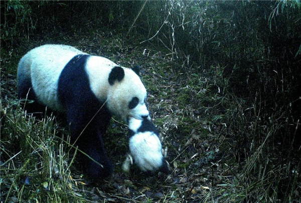 连续拍摄的3张图片显示,在郁郁葱葱的高山箭竹林间空地上,一只成年大熊猫妈妈嘴里叼着一只熊猫幼崽悠然从红外相机前经过,并迅速走进了位于相机后的箭竹丛,隐藏在林间的红外相机“偷拍”下了这一精彩瞬间。“这只熊猫幼崽应该是今年出生的,一般大熊猫幼崽出生后会跟着母亲生活,长到两岁半到三岁的时候才会离开母亲。”九寨沟县勿角自然保护区管理处主任胡学煜介绍,勿角自然保护区紧邻王朗自然保护区和白水江自然保护区,保护区内遍布野生大熊猫喜食的箭竹、紫箭竹及其它竹子,正是这些种类繁多的竹子为野生大熊猫的生存活动提供了充足的食物来源。图片来源:成都商报官方微博