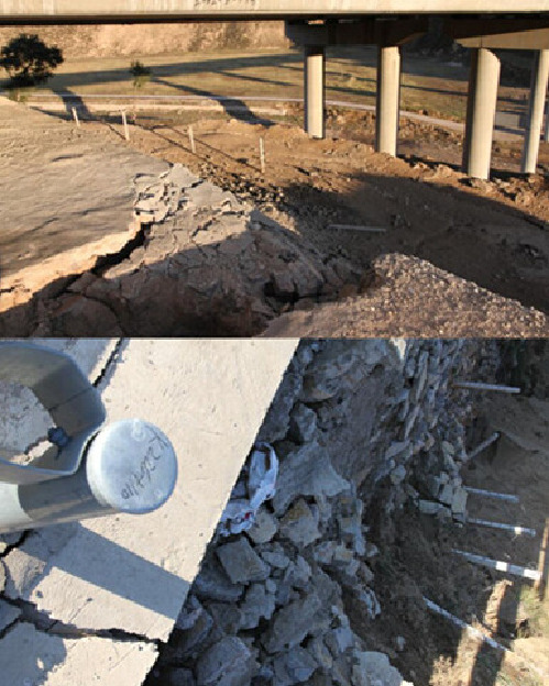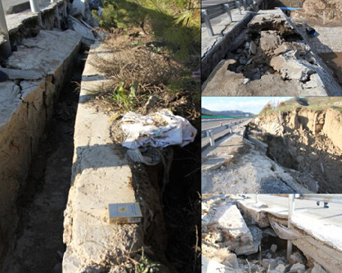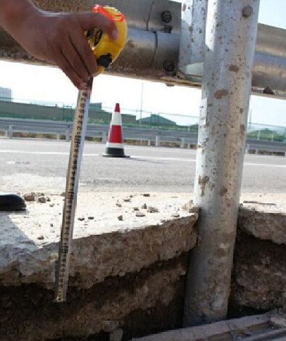 这是今年9月25日记者在G18荣乌高速山平段(226——229公里处)现场看到的情形——从塌陷处看下去,无论是主体工程还是附属工程,工程质量触目惊心,其偷工减料之程度令人发指。