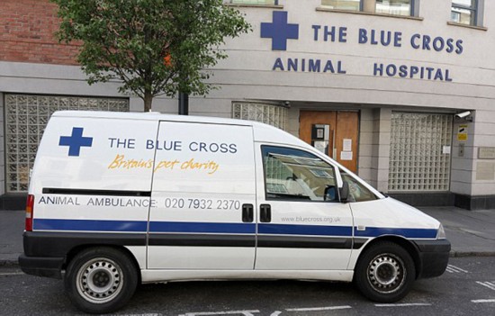 主人发现醉醺醺的贝拉后,急忙叫救护车将它送到伦敦的蓝十字动物医院,给它输液,以排出体内的酒精。(网页截图)