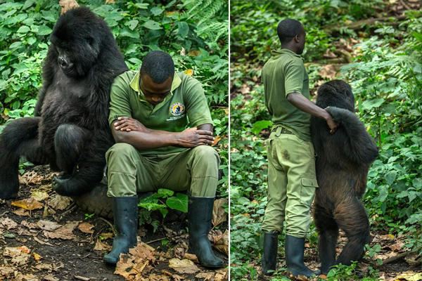 “动物是人类的好朋友”,一只生活在刚果的大猩猩用行动诠释了这句话。在刚果的大猩猩收养所里,管理员马蒂厄(Matthieu)垂着头、沮丧地坐在地上。这时,一只母猩猩在他身边坐下来,先是模仿他的表情逗他开心,接着用双手抱住他表示安慰。随后马蒂厄站起来,大猩猩又搂了搂他的腿。这一系列动作让马蒂厄非常感动,很快振作了精神。