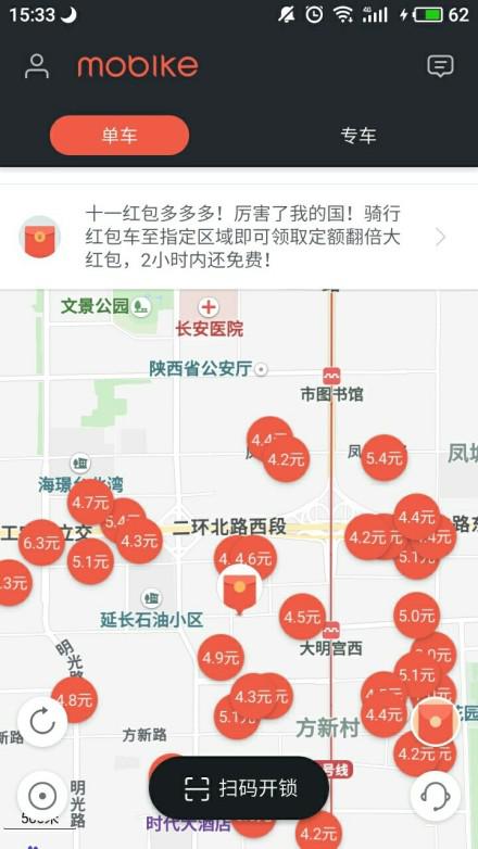 科技正在改变我们的生活。不仅仅是人工智能、物联网大数据,这个十一摩拜推出的“厉害了我的国”红包车也是科技味儿十足。在10月1日到5日期间,用户打开摩拜单车APP,即可看到大量带有“厉害了我的国”图标的摩拜红包车。用户扫码解锁后有效骑行红包车超过2分钟,锁车后即可获得1个现金红包;骑行红包车2小时免费且每日可领取最高50元红包奖励。红包金额根据不同停放区域“明码标价”;多个红包余额自动累加,不与摩拜单车账户余额累加;红包累计余额超过10元时,可提现至微信零钱。