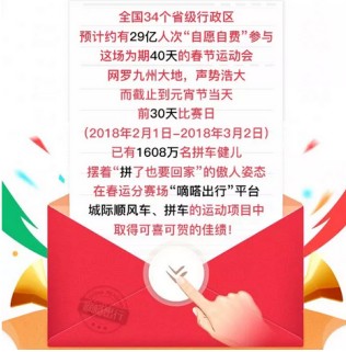 随着元宵节的结束,2018年的春运也已进入尾声。根据嘀嗒春运大数据显示,截止元宵节当天,已有1608万名乘客摆出“拼了也要回家”的傲人姿态,在春运分赛场“嘀嗒出行”平台中取得了喜人的成绩。福特途睿欧作为嘀嗒合作伙伴,在春运期间免费为上海、北京地区的乘客提供暖心的接送机/站服务,至今已有3309人报名参与,帮助2510人幸福返乡、顺利返程。