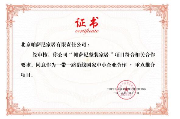 近日,北京帕萨尼责任有限公司的“帕萨尼整装家居”项目成功入选《一带一路·,项目推介手册》。