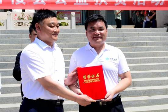 石楼县政府副县长郭登文为红岭创投电子商务股份有限公司副总裁张旭明先生颁发“公益扶贫爱心企业”证书