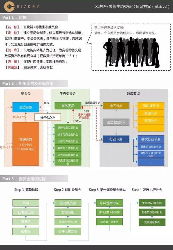第二个是生态委员会及超级节点建设。在这个板块我们做了非常大的”牺牲“和投入,我们将基金会的份额(占比30%)全盘托出�围绕项目所需的各个板块招募和投票选拔委员会成员,以及超级节点(原本服务于实体零售商户的移动支付服务商/中小型2B saas平台/具备商户拓展能力的地推公司/零售行业商会等等)。逐步将社区治理权真正归还给社区。详细策划大致如下。