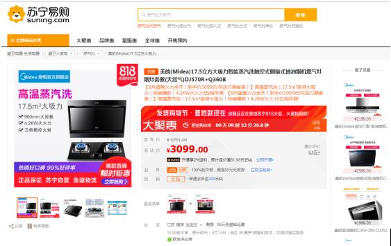 记者登录苏宁易购与京东的官网查询,发现聊天记录中提到的美的烟灶套餐DJ570R+Q360B的真实价格,苏宁易购平台确实比京东便宜了近千元。