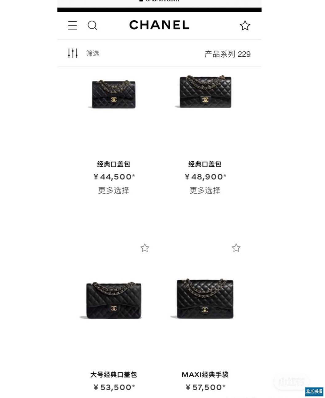 闻风涨价的消费者,悉数赶在涨价前“买买买”。北京商报记者于5月10日及13日分别走访北京SKP、国贸商城看到,不少消费者在听闻香奈儿涨价的消息后特意前来购买。正值北京SKP正值生日庆,即使香奈儿并未参与商场活动,店内仍旧“人山人海”。中午时段,门店门口已经排起了队伍。香奈儿国贸商城门店的销售透露,经典款的货源十分紧张,如CF系列每天都有补货,但每次只有1至2个背包到店,十分抢手。