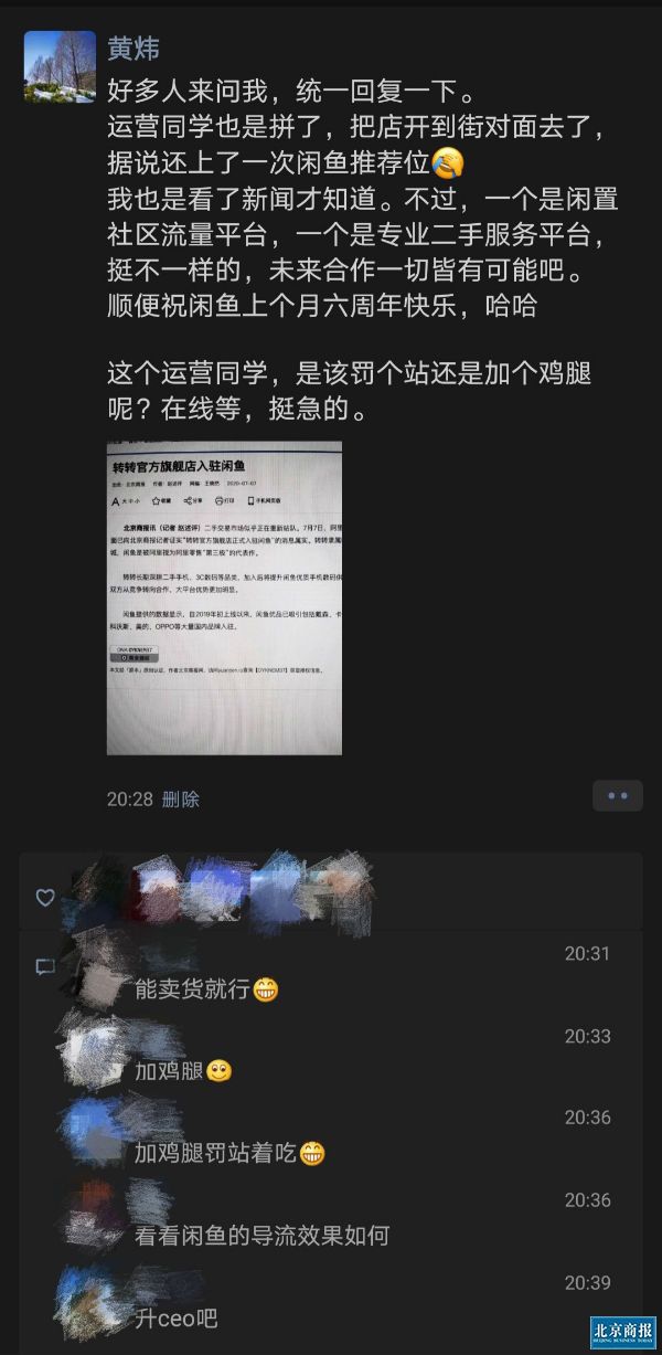 对于该事件,转转集团CEO黄炜7日晚在朋友圈回应此事时调侃道:“运营同学为了工作也是拼了。”黄炜表示,闲鱼和转转一个是闲置社区流量平台,一个是专业二手服务平台,市场定位和发展方向有较大不同,不排斥双方未来有更深合作的可能性。