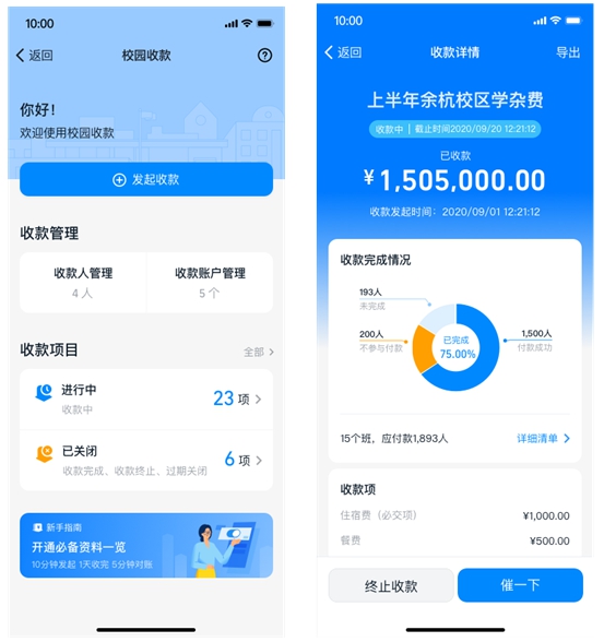 钉钉方面介绍,校园收款产品经过了钉钉和支付宝双方项目团队持续半年多的打磨,过程中调研了大量学校和教培机构的真实需求。“教育行业收款普遍存在三个问题,第一是班级收款无法收款到公户。第二是提现费用高。此外,收款统计和催收麻烦。”校园收款产品负责人元安介绍,“校园收款在产品设计上充分考虑到了学校和教培机构收款场景的痛点,多重认证确保安全,公户收款不占老师提现额度。按照学生维度收款,收款催缴方便。”