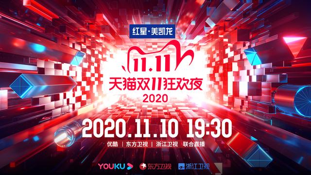 11月10日19:30,由红星美凯龙冠名的2020天猫双11狂欢夜将于优酷、东方卫视、浙江卫视同步直播,以全球狂欢夜直播模式开启新一轮消费狂欢!