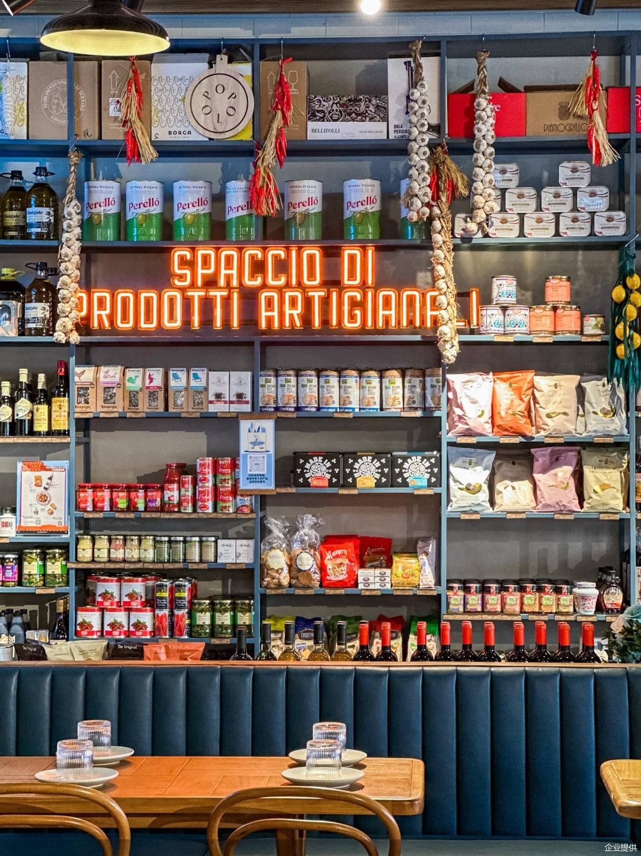 据介绍,⾃2017年上海安福路的第⼀家社区零售店铺——Alimentari起,便吸引不少消费者专程前去打卡。随着品牌升级,Alimentari尝试将餐厅、零售、酒吧集为⼀体,推出Alimentari Grande品牌旗舰店(上海东湖路店)。