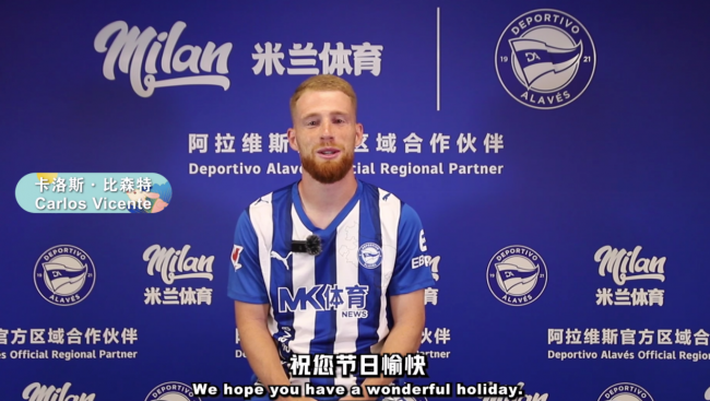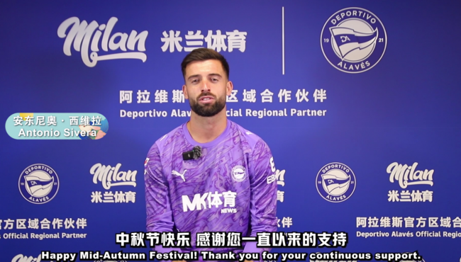 节日视频中,阿拉维斯竞技多位球员依次出镜,以真挚的语言送出节日祝福。边锋卡洛斯·比森特率先出场,用流畅中文温柔道出:“祝大家中秋节快乐。”随后,前锋托尼·马丁内斯带着笑意说道:“愿您在国庆假期与亲友相聚,度过一个温馨而美好的节日。”,出场的门将安东尼奥·西维拉则庄重致意:“感谢您一直以来的支持,祝您双节安康,阖家幸福。”三位球员虽远在西班牙,却借由镜头传递出节日的温度与诚意,将祝福送至亚洲每一位球迷心中。