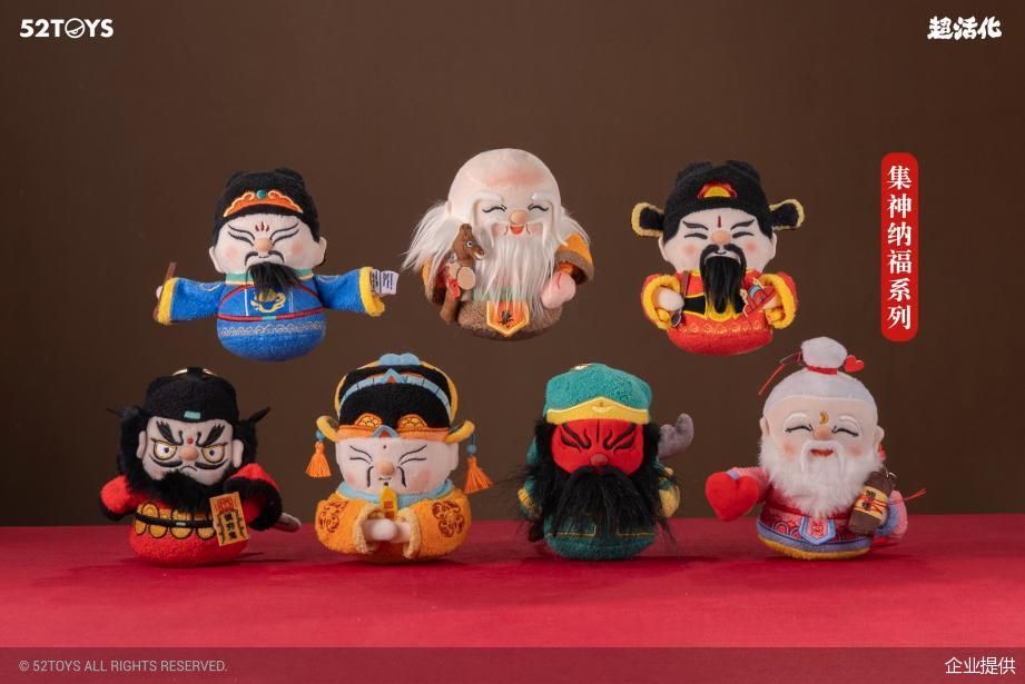 超活化集神纳福系列毛绒挂件以中国核心神仙为设计原型,通过标志性的形象和配饰凸显人物特质,并加以现代化的Q版风格设计演绎,让原本庄严的神变得憨态可掬。该系列包括了文昌帝君(隐藏款)、文曲星君、月老、钟馗、武财神关羽、寿星。