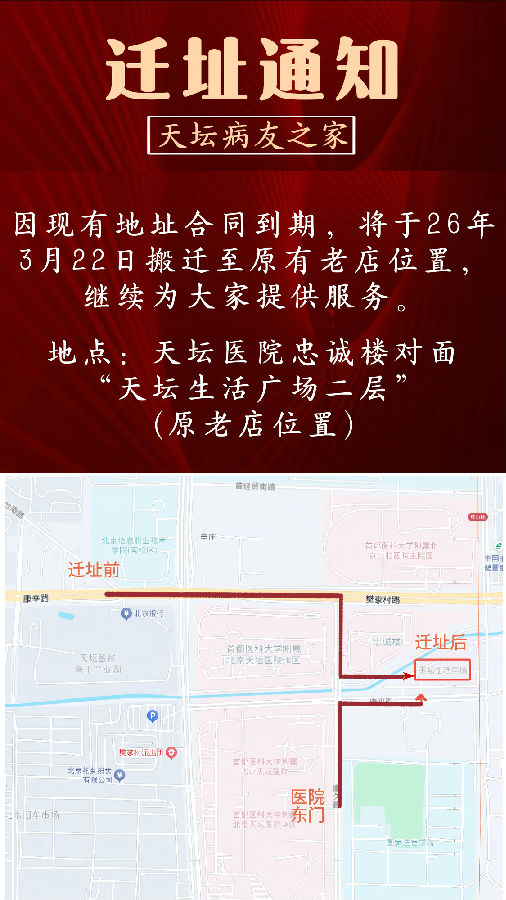 【通知】医路无忧天坛病友之家迁址公告