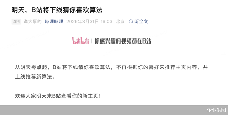 B站公告:明日起将下线猜你喜欢算法