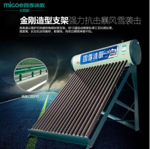 支架的材料一般是不锈钢、铝合金或是钢材,支架是支撑集热器与保温水箱的架子,因此需要稳定性好、结构牢固、不生锈、抗老化和抗风雪。质量好的材料一般是不锈钢和钢材,四季沐歌太阳能热水器金刚造型支架采用的是类高速公路护栏热镀锌角钢材质支架,经过13道自动喷塑处理工艺抗锈处理,强度高,耐腐蚀。此外,四季沐歌太阳能热水器产品支架可承载重量为1586.35KG,并在2015年创世界纪录协会“世界上太阳能热水管(36管)产品支架承重能力最大”世界纪录。什么牌子的热水器安全?