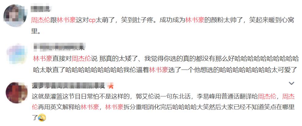 各位灌篮女孩也是口嫌体正,说着小公举不要面子的啊,然后狂笑耿直boy太有爱。还有“专业解说”梳理领队间逻辑线,郭艾伦说东北话——李易峰普通话翻译给周杰伦——周杰伦英文解释给林书豪,这么看节目组座位安排很合理呀。此处请自行脑补林书豪表情包:豪豪不知道,豪豪只会笑。